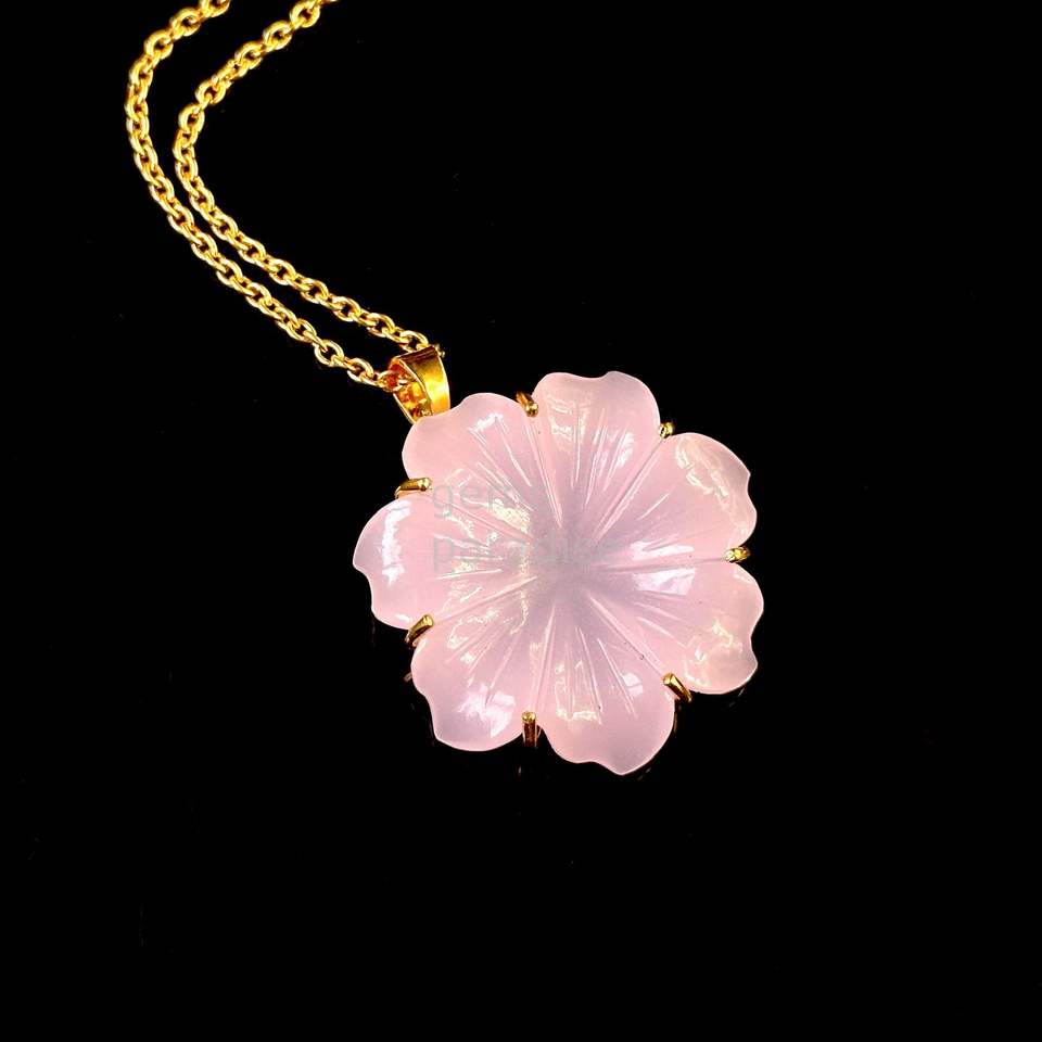 Gemstone Name:Natural Pink Chalcedony Flower Charm Pendant