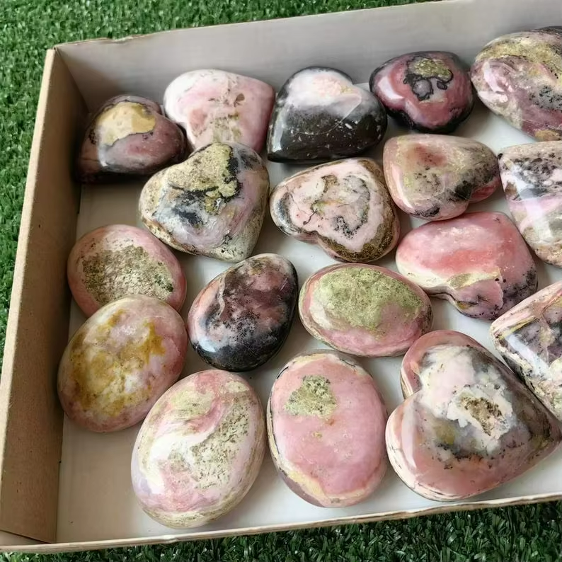 เปลือกหอยสีชมพูธรรมชาติ โอปอลสีชมพูเปรูรูปหัวใจ คาโบชองเปลือกหอยสีชมพู ขัดเงา จี้พลอยเปลือกหอยสีชมพู พลอยหลวมจำนวนมาก
