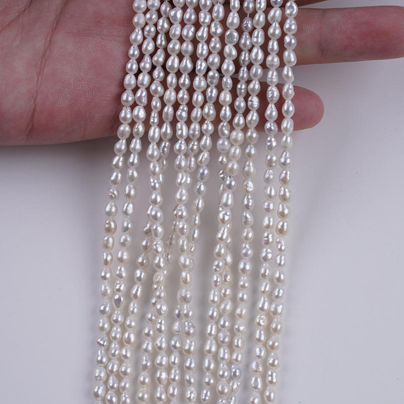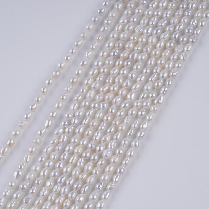 ไข่มุกน้ำจืดสีชมพูธรรมชาติ รูปทรงข้าว ขนาด 3.5-4 มม. ลูกปัดรีเจนเนอเรต ผลิตภัณฑ์กึ่งสำเร็จรูป ลูกปัดแบบหลวม