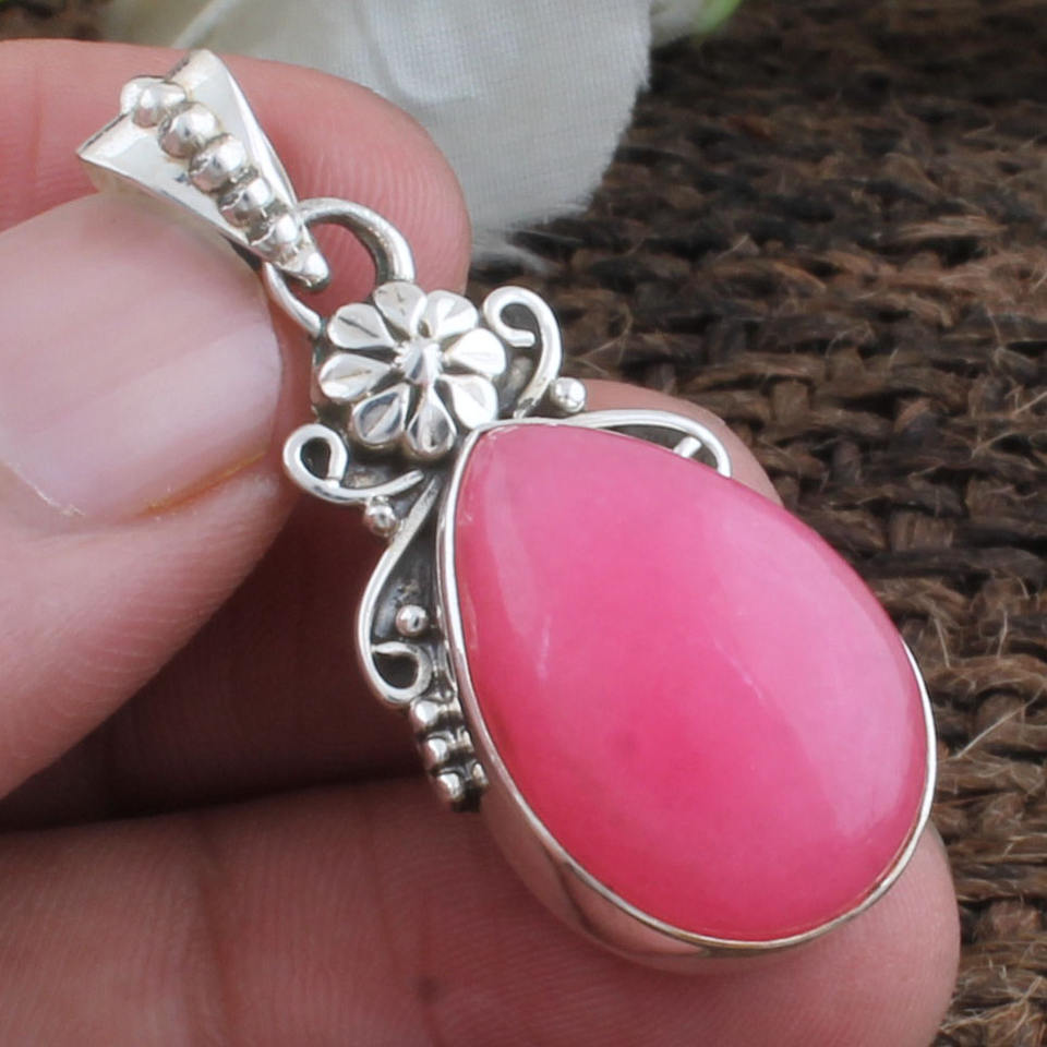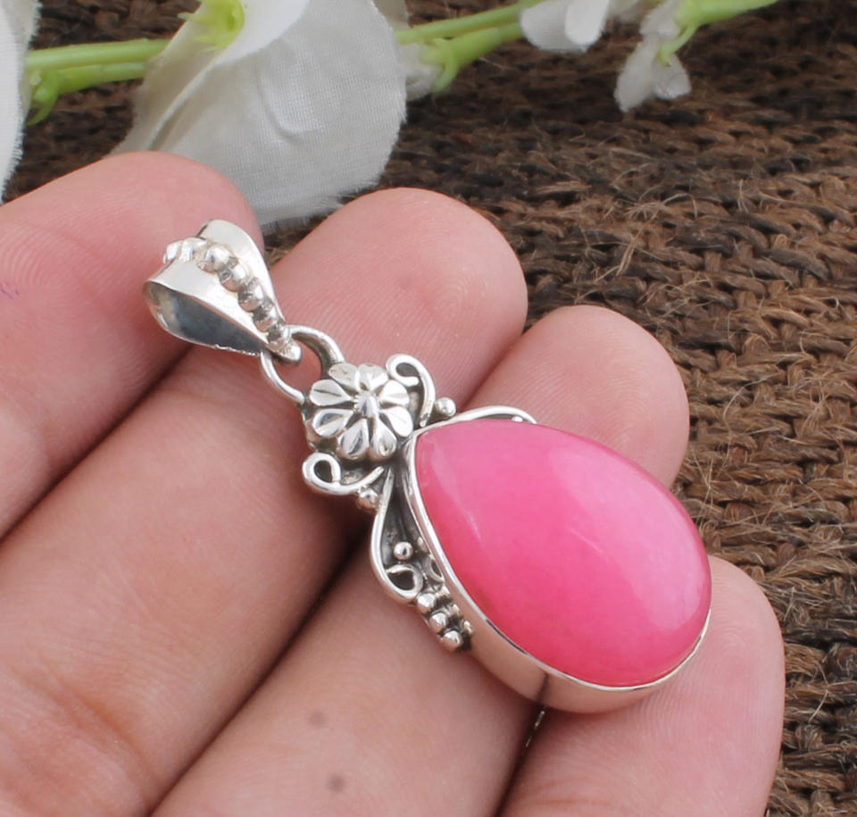จี้หยกสีชมพูธรรมชาติ เงินแท้ 925 สร้อยคอหยกเจไดต์ทำมือสไตล์วินเทจ ของขวัญวันครบรอบสำหรับทุกเพศ ขายส่ง