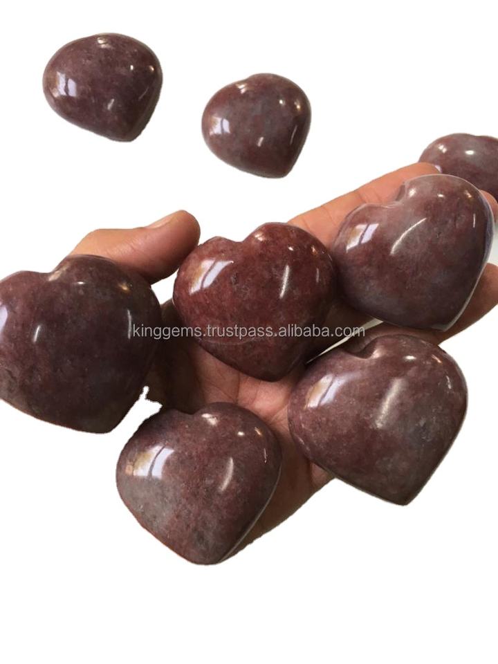 คริสตัลเลพิโดไลต์สีชมพูธรรมชาติรูปหัวใจ แกะสลักขัดเงา ของขวัญแต่งงานเสริมฮวงจุ้ยเรื่องความรัก