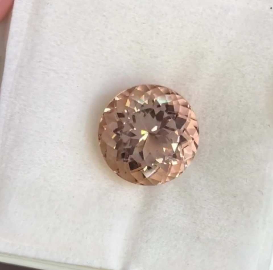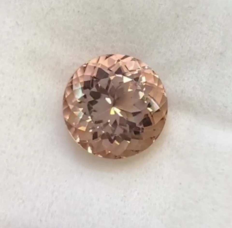 พลอยมอร์แกไนต์สีชมพูธรรมชาติ ทรงบริลเลียนท์คัท คุณภาพสูง ขนาด 10 มม. รูปทรงกลม พร้อมใบรับรองจากผู้เชี่ยวชาญภายนอก ตรวจสอบด้วยกล้องลูเป้ สะอาด พร้อมใบรับรอง