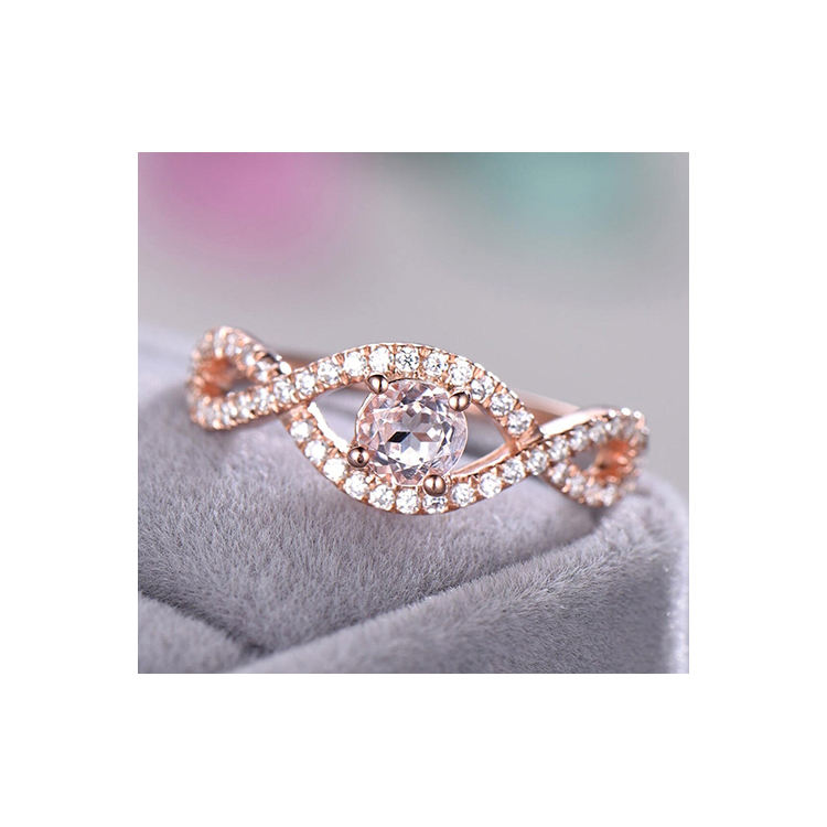 อัญมณีมอร์กาไนต์สีชมพูธรรมชาติหรูหราเครื่องประดับดีไซน์ใหม่พร้อมแหวนเพชรแท้