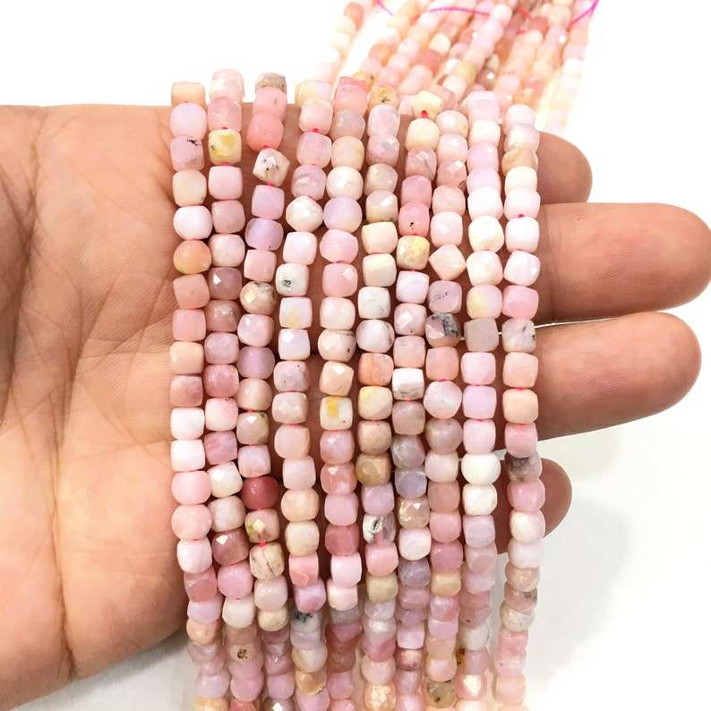 ลูกปัดโอปอลสีชมพูธรรมชาติทรงกล่องอัญมณีลูกปัดร้อยสายลูกปัดโอปอล7-8มม. สำหรับทำเครื่องประดับสร้อยข้อมือ