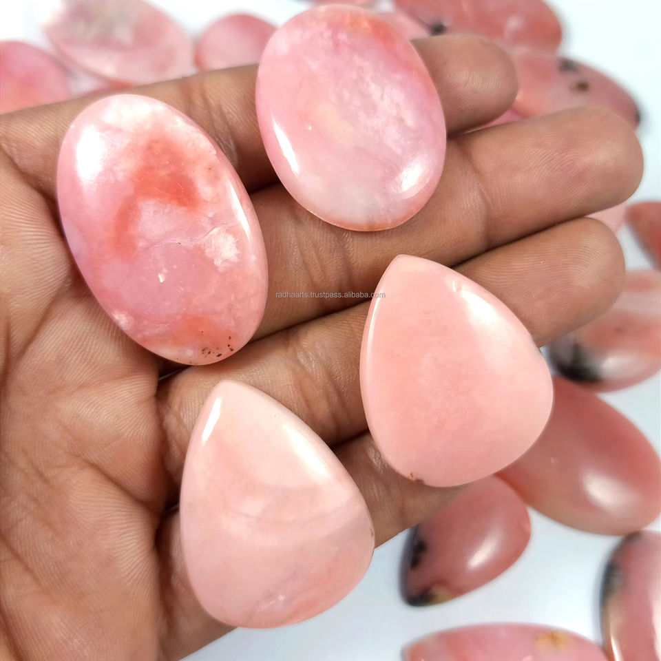 อัญมณีหลวมกึ่งมีค่ารักษาด้วยคริสตัลโอปอลอัญมณีหลวมธรรมชาติสีชมพูแบบแฮนด์เมดจำนวนมาก