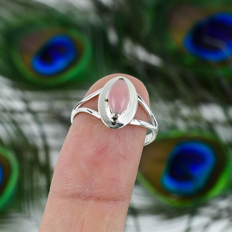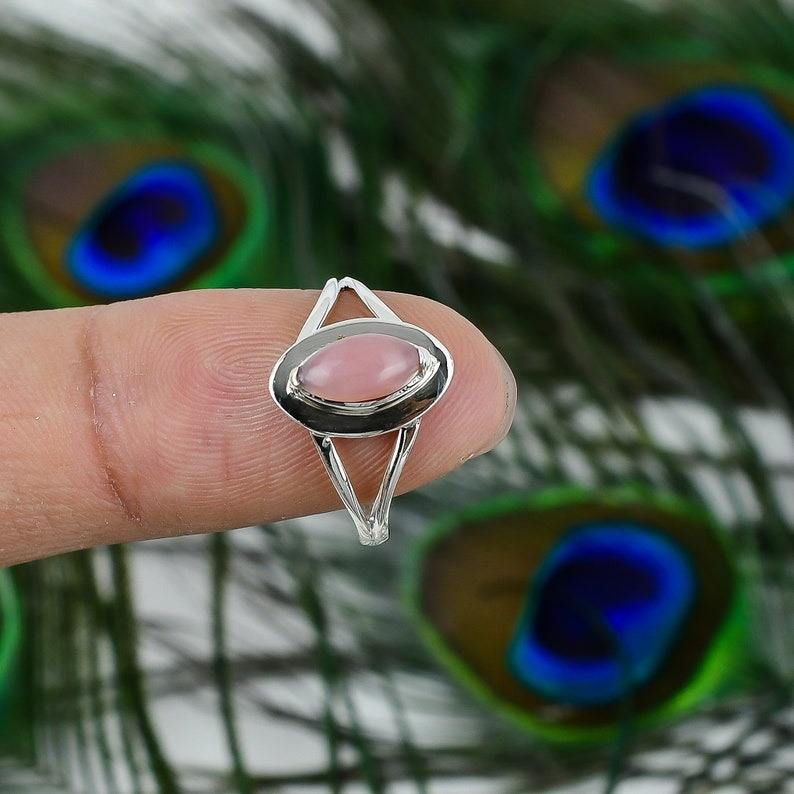 ธรรมชาติสีชมพูโอปอลCabochonอัญมณีSolid 925 เงินสเตอร์ลิงHandmadeแหวนเครื่องประดับเงินสเตอร์ลิง 925 ประทับตราแหวนเครื่องประดับ