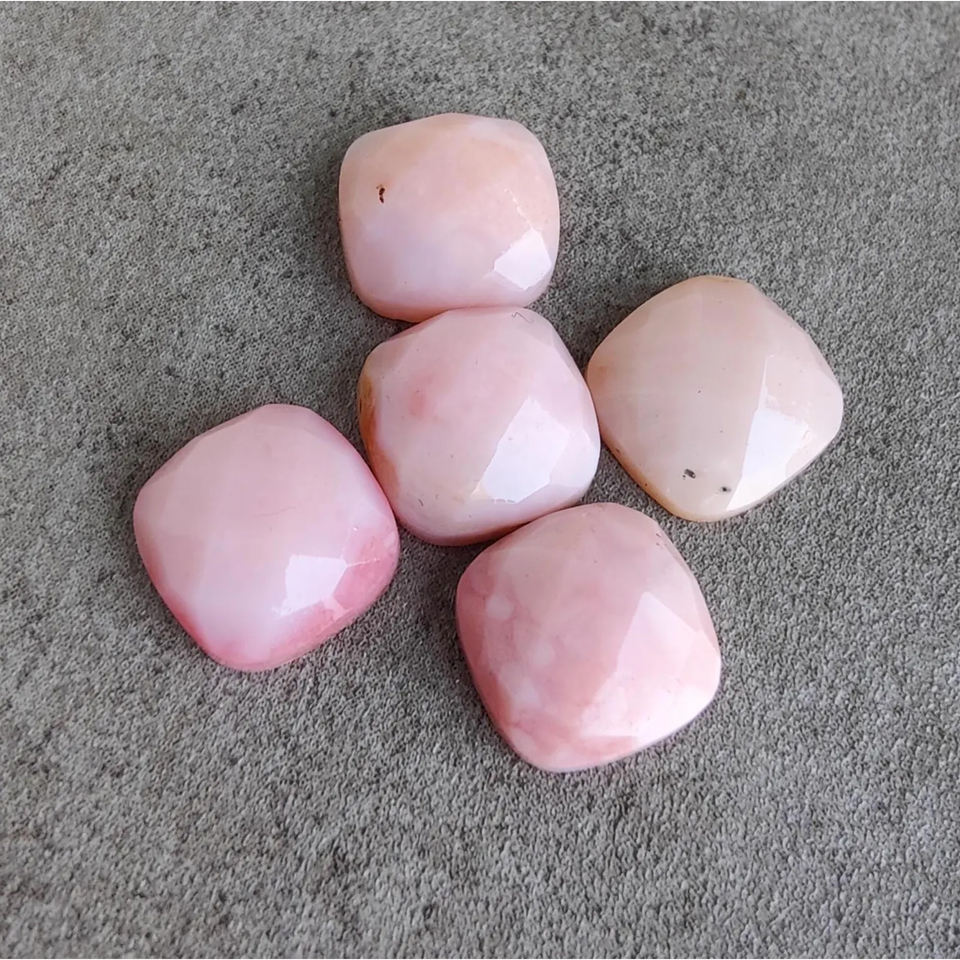 โอปอลสีชมพูธรรมชาติทรงเชคเกอร์คัท คาโบชอง ทรงคุชชั่น ขนาดปรับเทียบแล้ว สำหรับทำเครื่องประดับ มีทุกขนาด