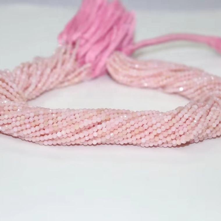 ลูกปัดโอปอลสีชมพูธรรมชาติเจียระไนเป็นเม็ดโอปอลสีชมพูตัดเหลี่ยมให้ดูเป็นผู้หญิง