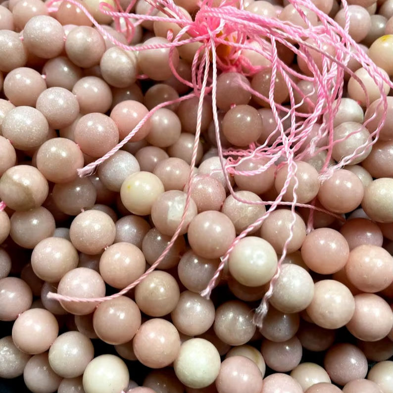 ลูกปัดหินโอปอลสีชมพูธรรมชาติ