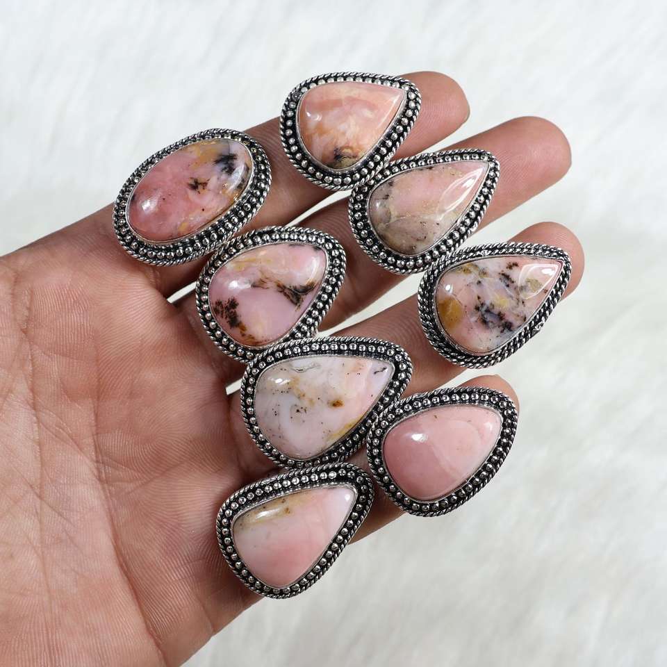 Natural Pink Opal Gemstone Ring Handmade Jewelry for Bride Pink Opal Rings Lot Silver Plated Ring Wedding Gift for Bridesmaid
