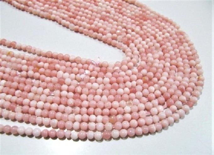 ลูกปัดโอปอลสีชมพูธรรมชาติทรงกลมเรียบ6มม. กลมกลม brads ขายต่อเส้น13นิ้ว