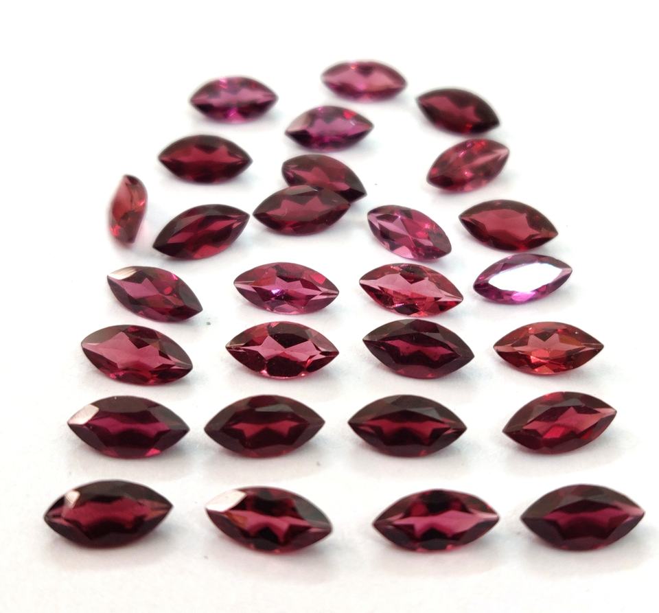 โรโดไลท์โกเมนธรรมชาติสีชมพูตัดมาร์คีท2X4มม. ถึง5X10มม. เหลี่ยมเพชรพลอย-ชมพูโรโดไลท์การ์เน็ตมาร์คีส์ตัด