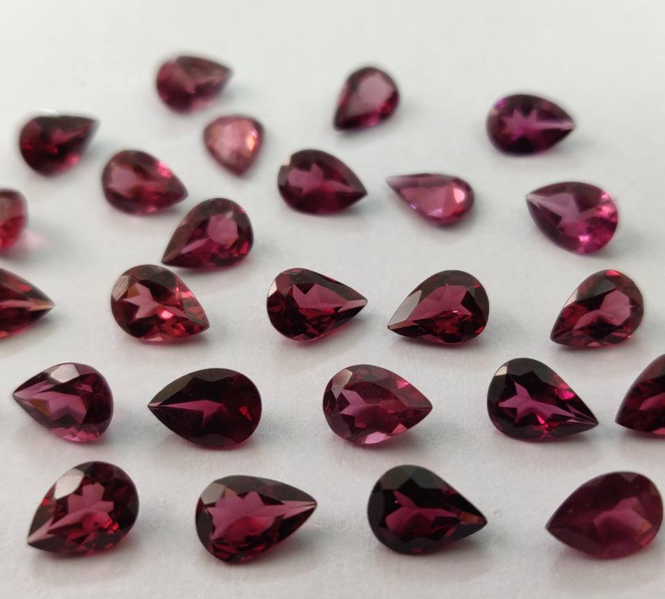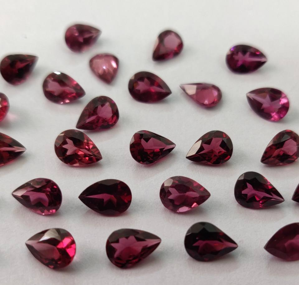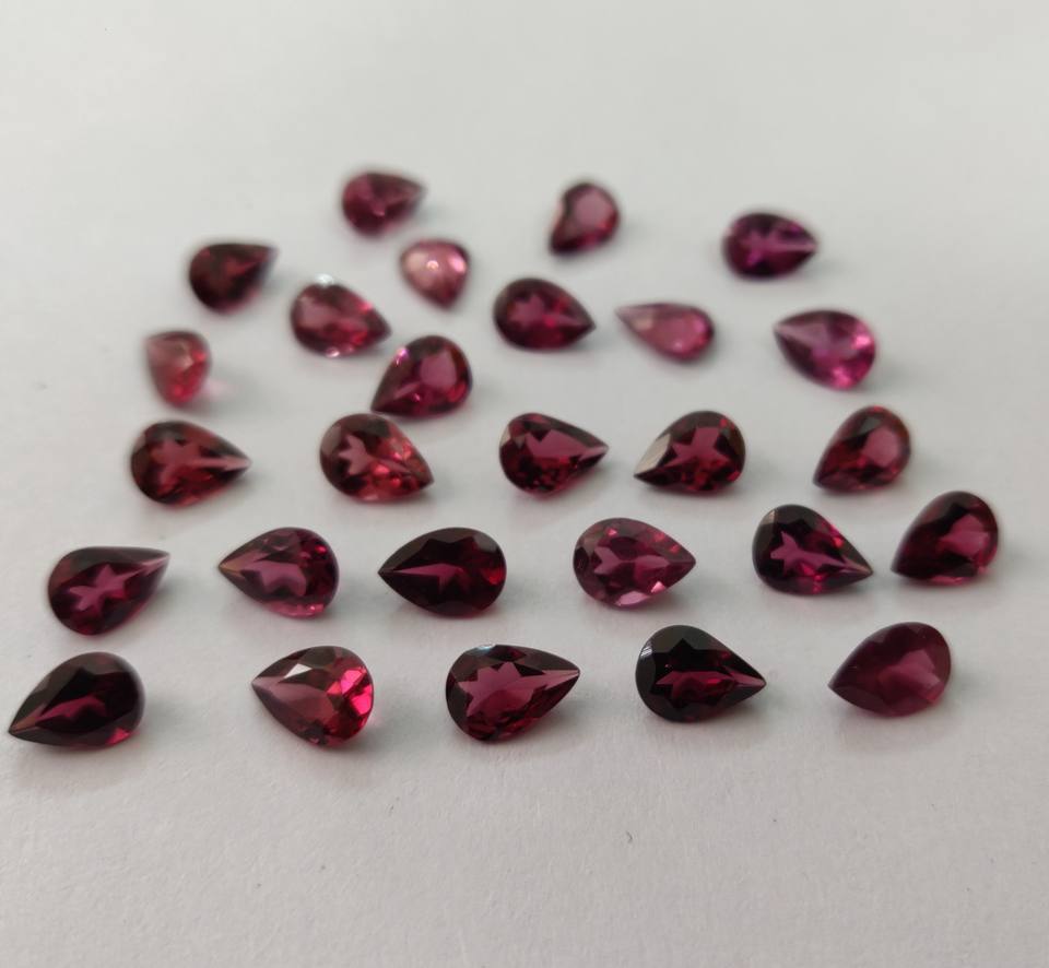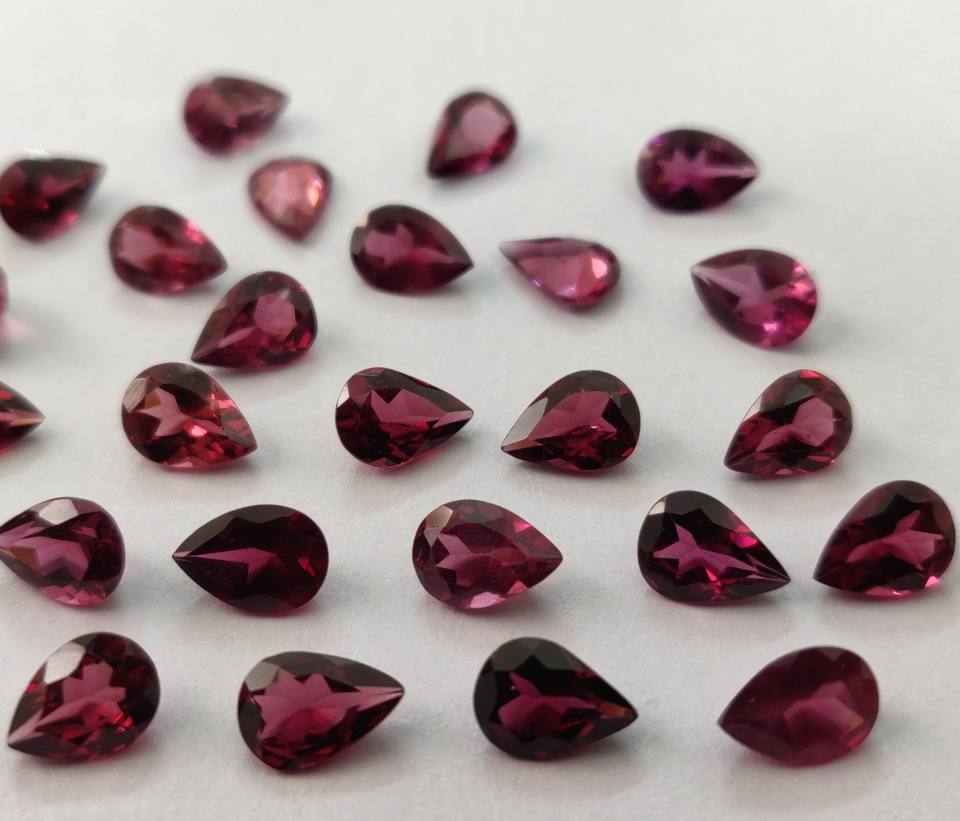 ลูกแพร์โกเมนโรโดไลต์สีชมพูธรรมชาติขนาด5x7มม. พลอยโกเมนโรโดไลต์สีชมพูแบบหลวม
