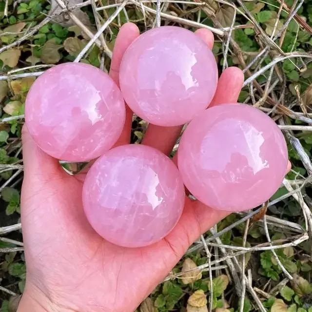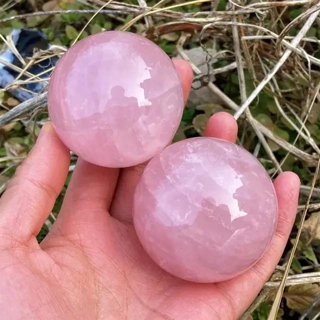 ลูกบอลคริสตัลควอตซ์ธรรมชาติสีชมพูกุหลาบธรรมชาติคุณภาพสูงหินอัญมณีบำบัดแท้ขัดเงาบ้านฮวงจุ้ยตกแต่งสไตล์ความรักทรงกลม