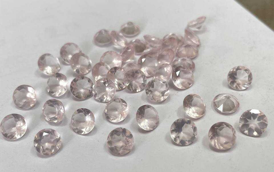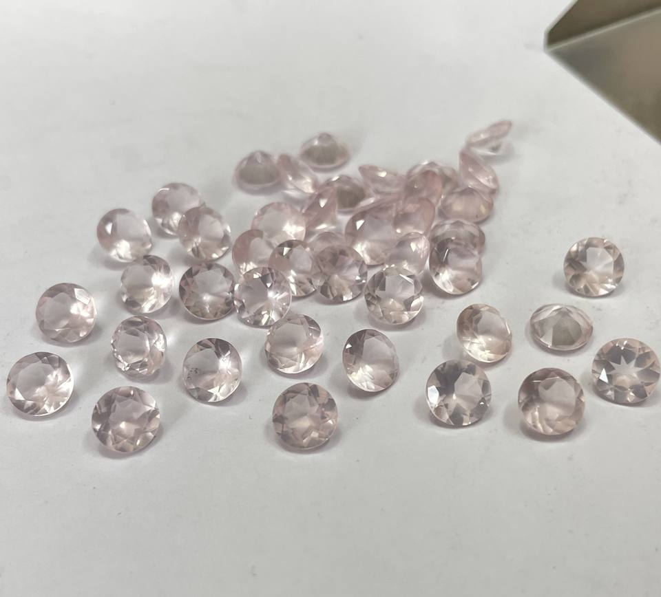 โรสควอทซ์สีชมพูธรรมชาติทรงกลมเจียระไน2มม. สีชมพูโรสควอทซ์ทรงกลมหลวม