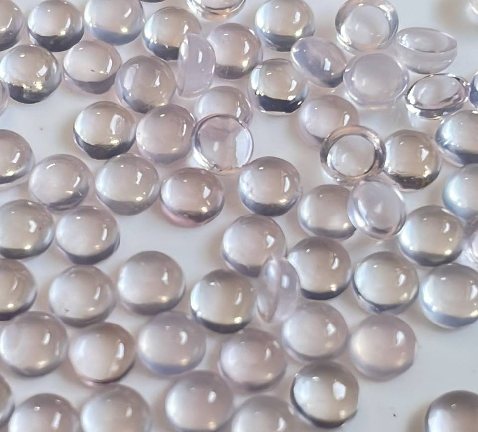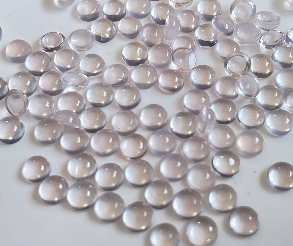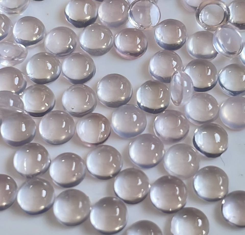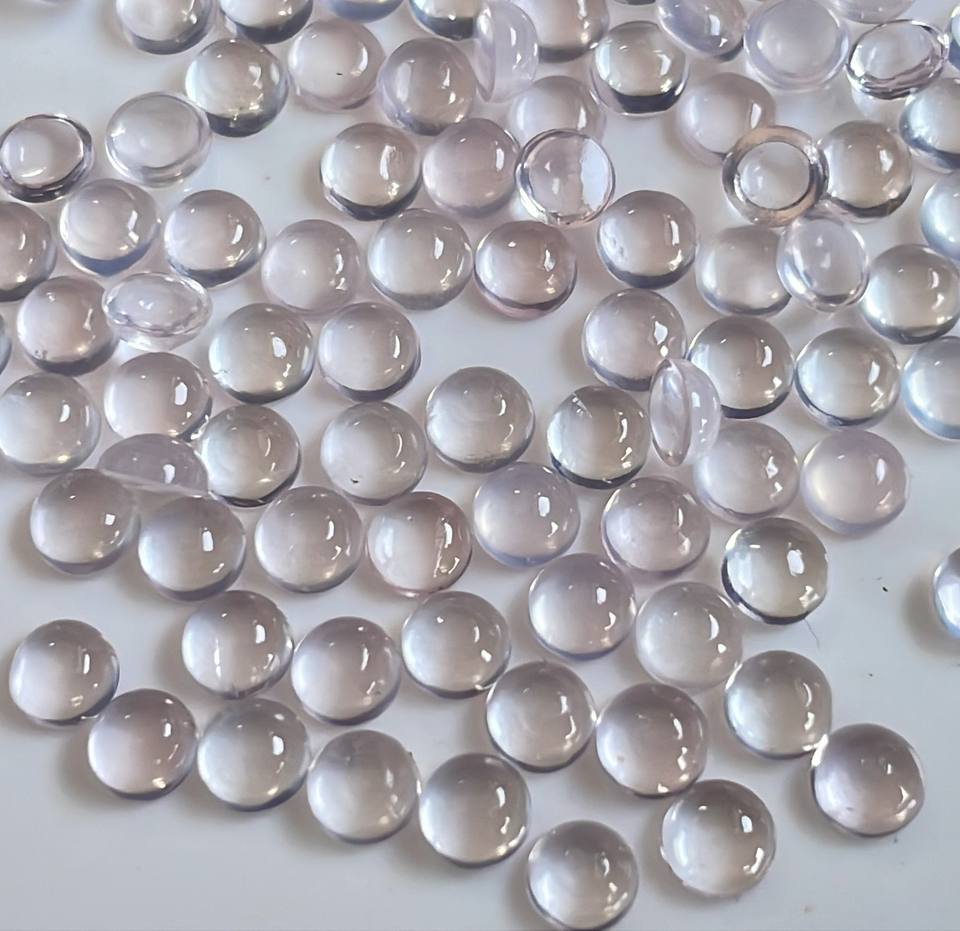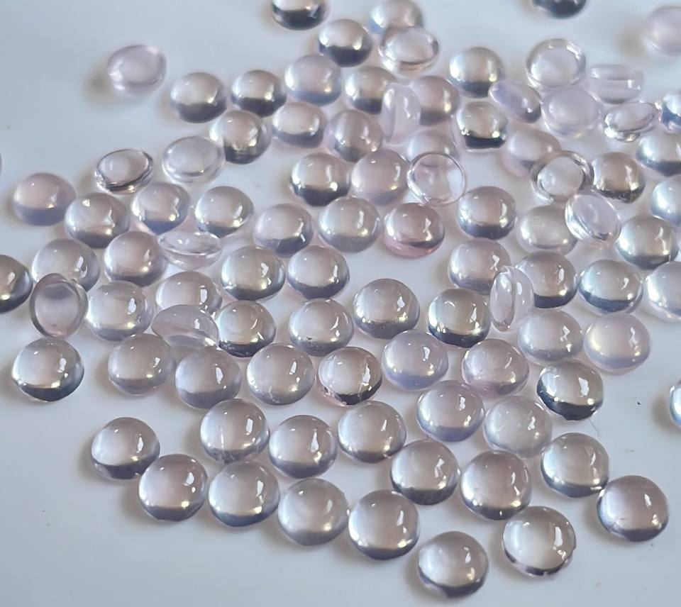 โรสควอตซ์สีชมพูธรรมชาติทรงกลมแบบคาโบชอง 3 มม. ด้านหลังแบน - โรสควอตซ์สีชมพูทรงกลมแบบหลวม