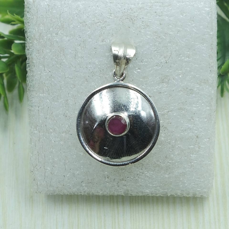 จี้รูปทรงกลมทำมือประดับพลอยทับทิมสีชมพูธรรมชาติบนตัวเรือนเงินแท้ 925 ดีไซน์เรียบง่าย พร้อมคุณสมบัติบำบัดรักษา เหมาะเป็นของขวัญสำหรับทุกคน