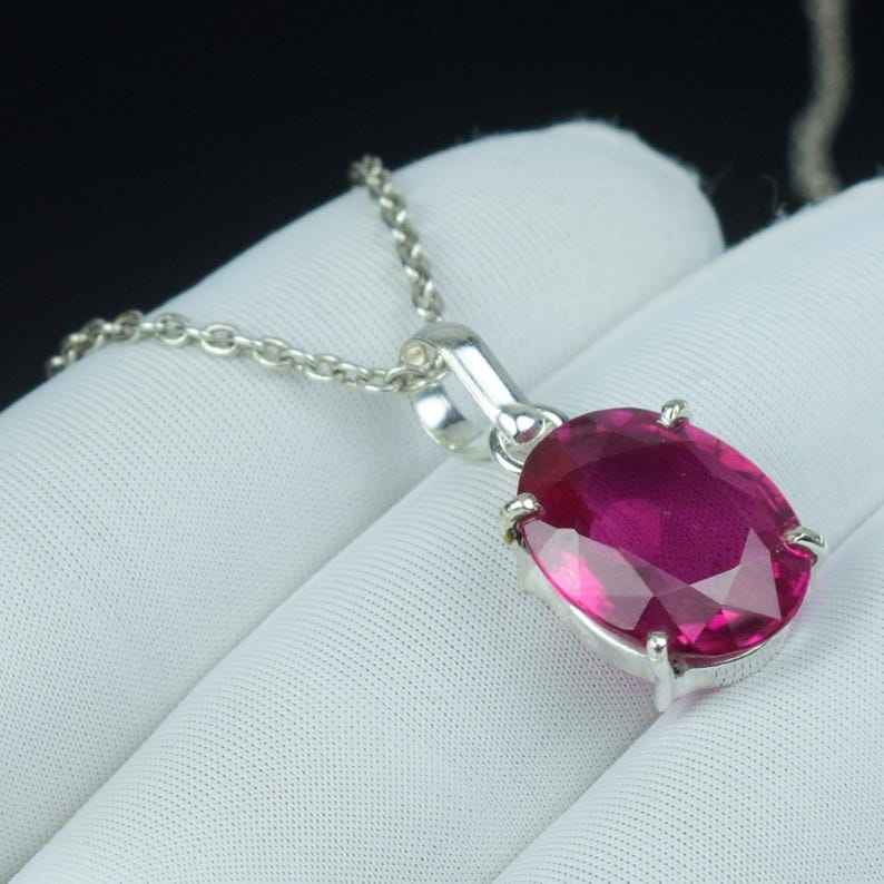จี้ห้อยคอหรูหรา ทับทิมสีชมพู