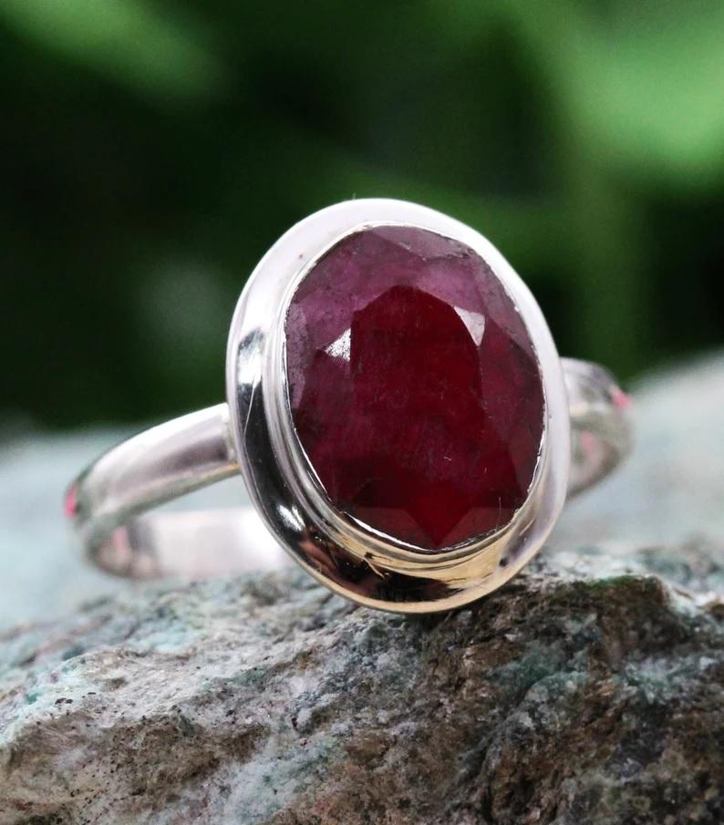 แหวนทับทิมสีชมพูธรรมชาติไม่ให้ความร้อนเครื่องประดับที่ดีการตั้งขอบพลอย roby ไม่ผ่านการบำบัดสำหรับวันครบรอบแต่งงาน