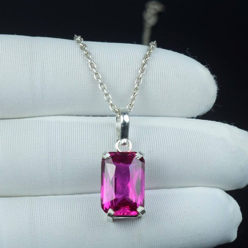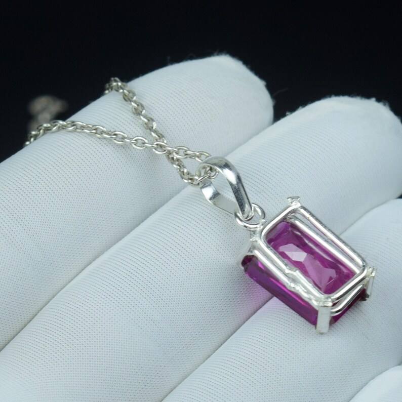 จี้แซฟไฟร์สีชมพูธรรมชาติ เงินแท้ 925 สร้อยคอคริสตัลบำบัดทำมือ ของขวัญสำหรับแฟนสาว