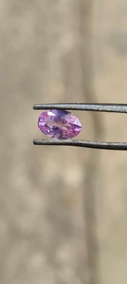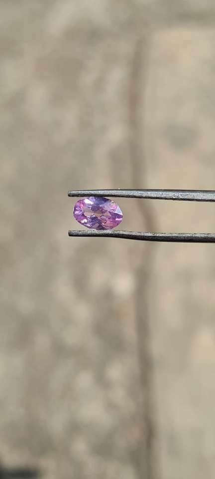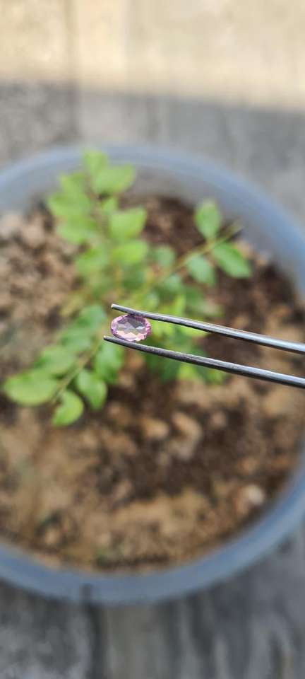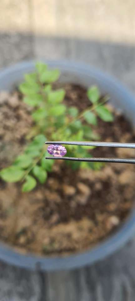 พลอยสปิเนลสีชมพูธรรมชาติทรงรีเจียระไนเหลี่ยมมุมพร้อมประกายรุ้งจากแหล่งมาเฮงเก้