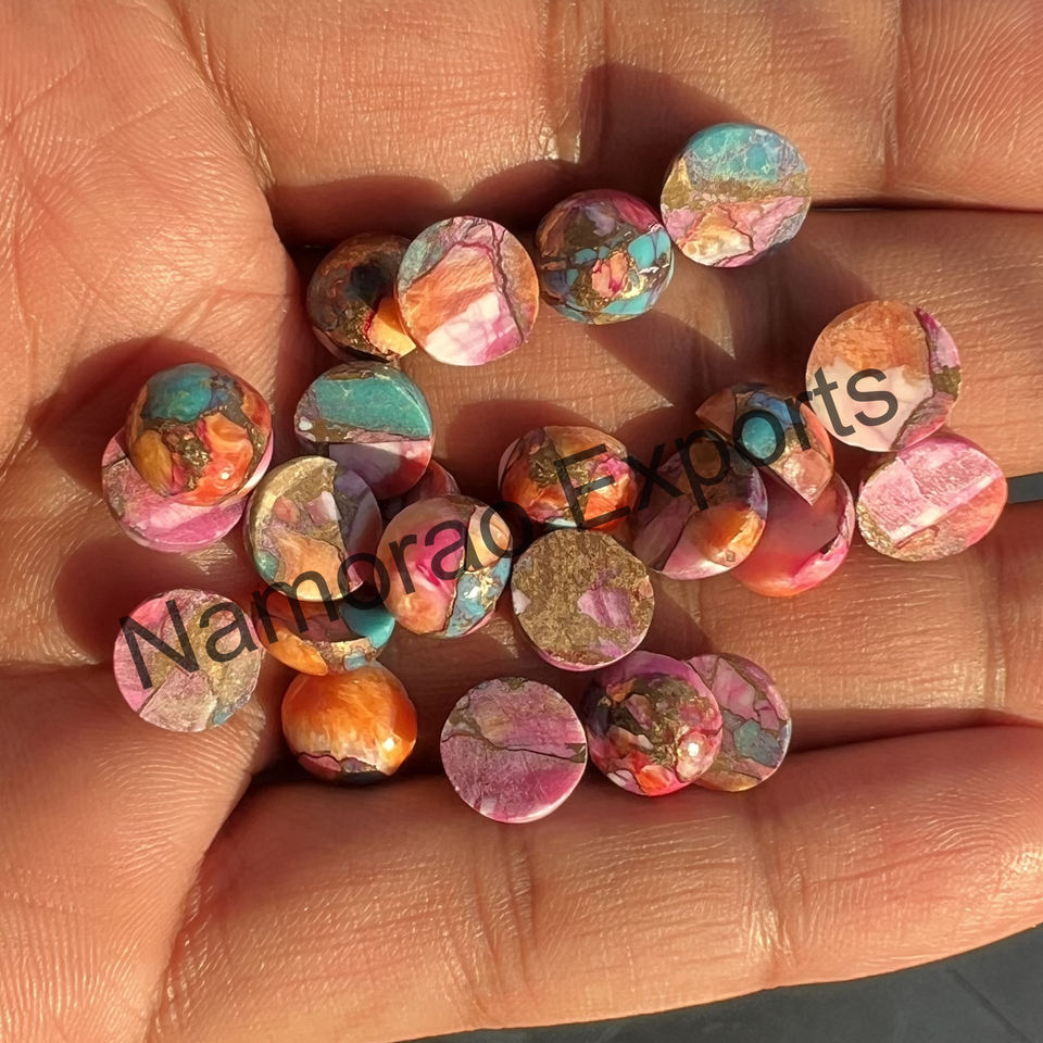 พลอยสีชมพูทองแดงหนามธรรมชาติ10x10มม. ทรงกลม Cabochon ทุกขนาดที่มีอยู่ด้านหลังแบนเครื่องประดับทำหินอัญมณีหลวม