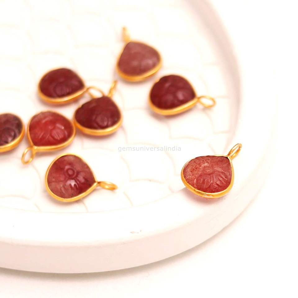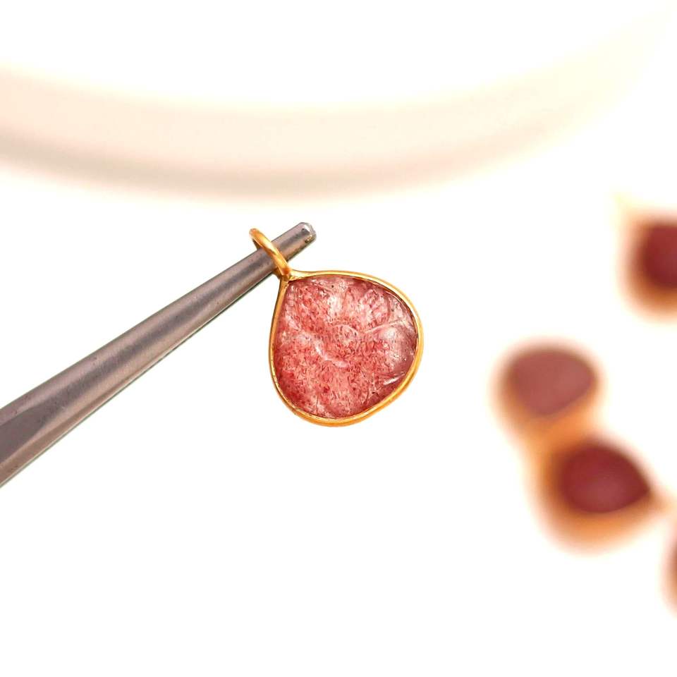 จี้หินควอตซ์สตรอว์เบอร์รีสีชมพูธรรมชาติ แกะสลักรูปดอกไม้