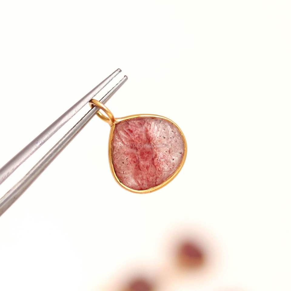 จี้หินสตรอเบอร์รี่ควอตซ์สีชมพูธรรมชาติแกะสลัก