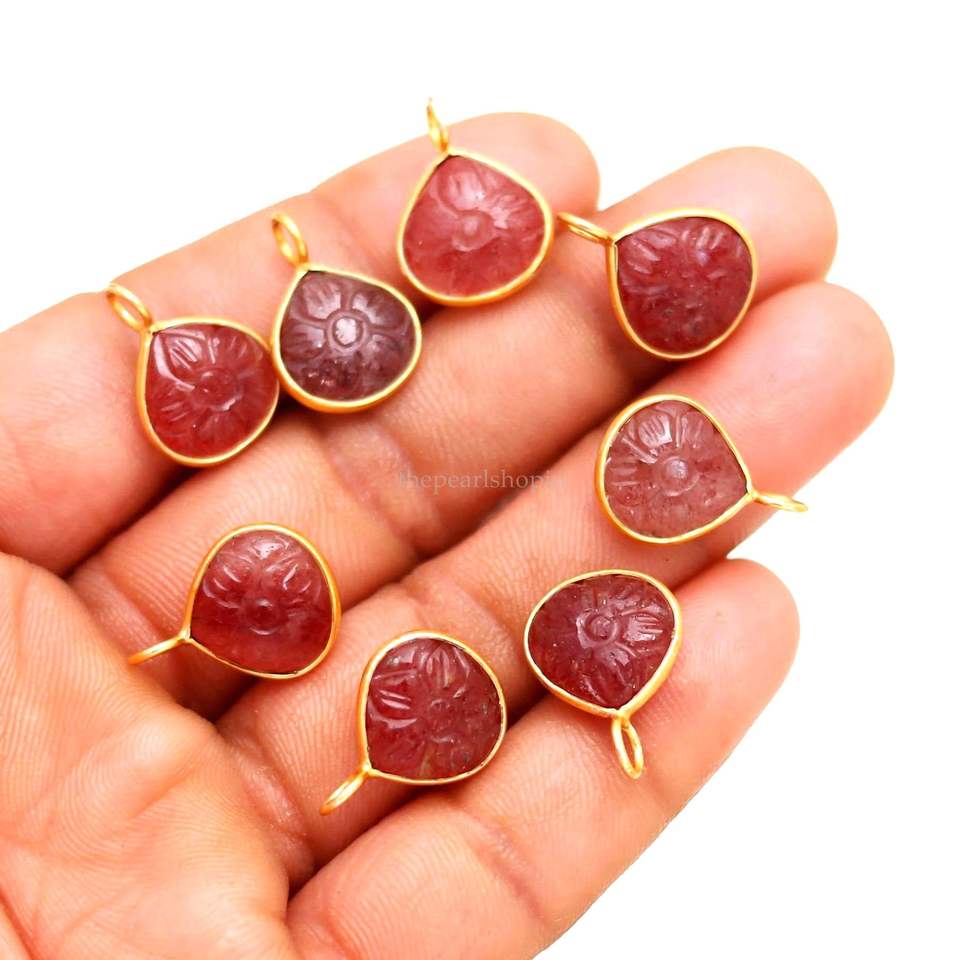 จี้รูปดอกไม้ควอตซ์สตรอเบอร์รี่สีชมพูธรรมชาติ เงินแท้ 925 ประดับอัญมณีแกะสลักรูปหัวใจ ขนาด 12 มม. สำหรับทำเครื่องประดับ
