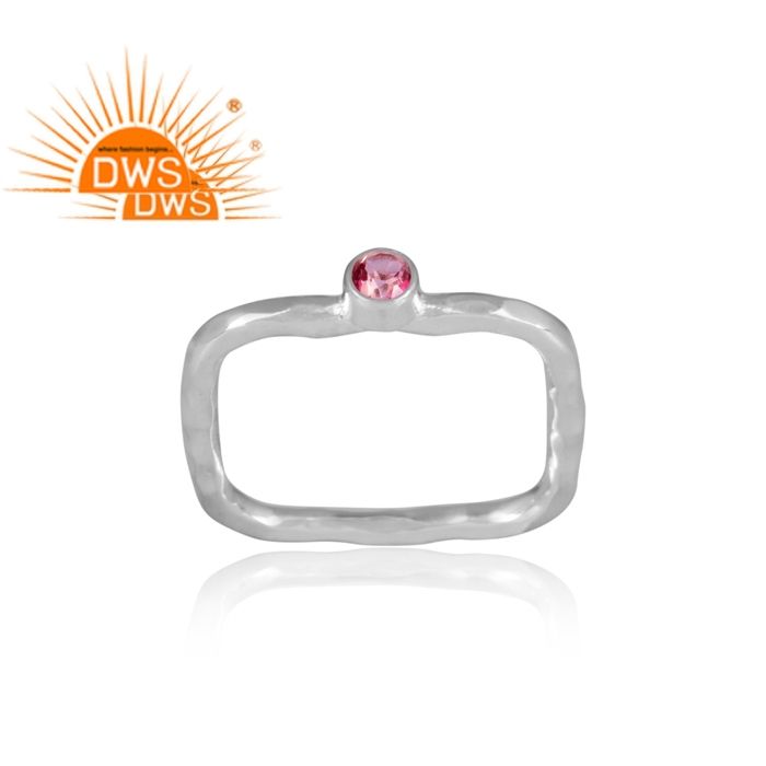 แหวนพลอยบุษราคัมสีชมพูธรรมชาติเครื่องประดับแหวนสี่เหลี่ยม925เงินผู้ผลิต