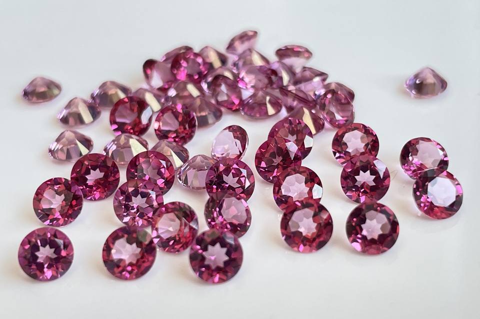 บุษราคัมสีชมพูธรรมชาติทรงกลมตัดเหลี่ยมเพชรพลอยขนาด6มม. คุณภาพสูง-สีชมพูบุษราคัมรอบเหลี่ยมเพชรพลอย