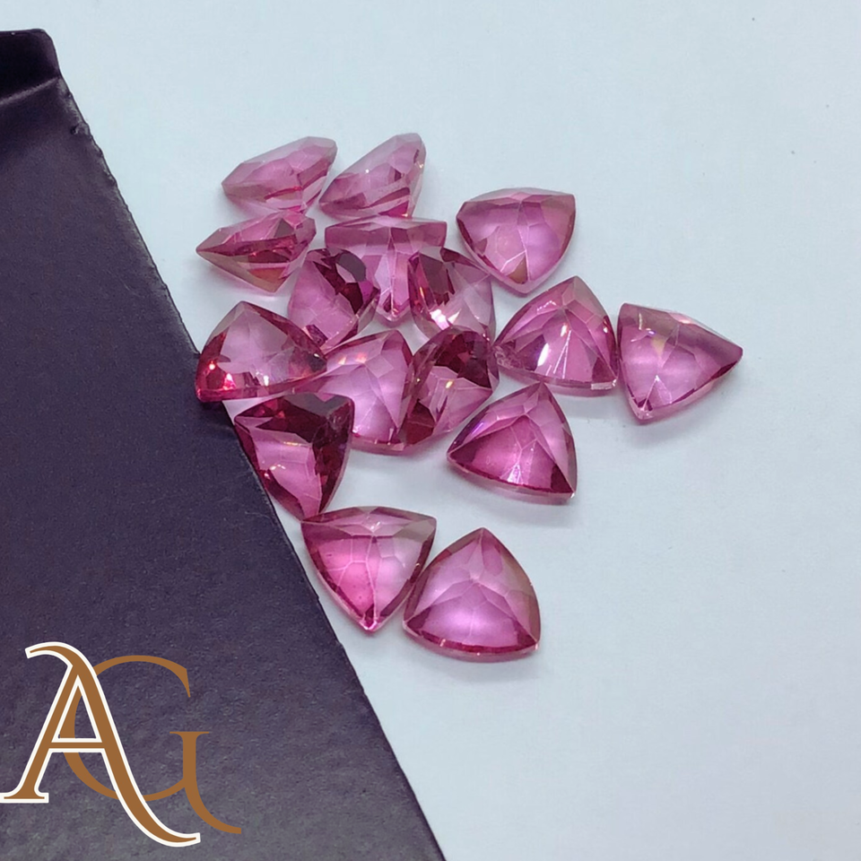 พลอยสีชมพูบุษราคัมล้านล้านสามเหลี่ยมตัดเป็นเหลี่ยมเพชรพลอยหลวมสำหรับทำเครื่องประดับหินเคลือบ4มม. 5มม. 6มม. 7มม. 8มม. 10มม.