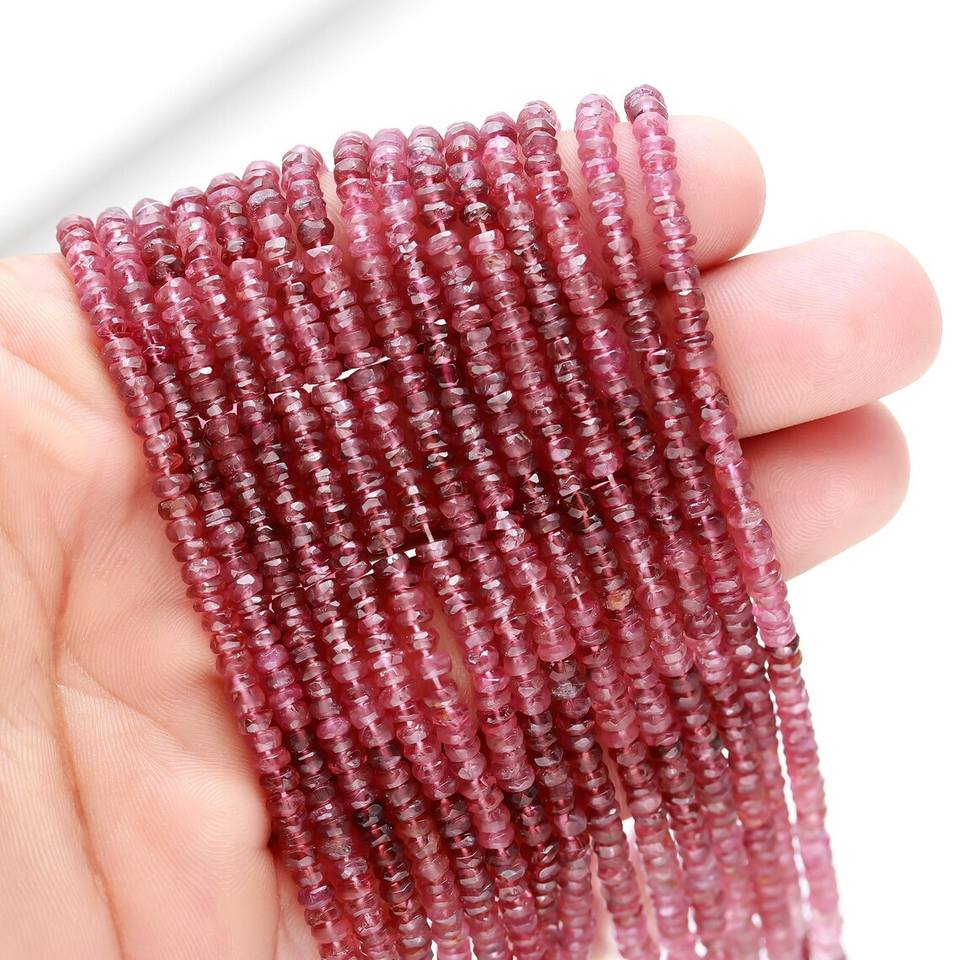 ลูกปัดพลอยสามสีสีชมพูธรรมชาติเกรด AAA 3.5-4มม. วัสดุจากหินสามสีได้รับการรับรองการประเมินโดยบุคคลที่สาม