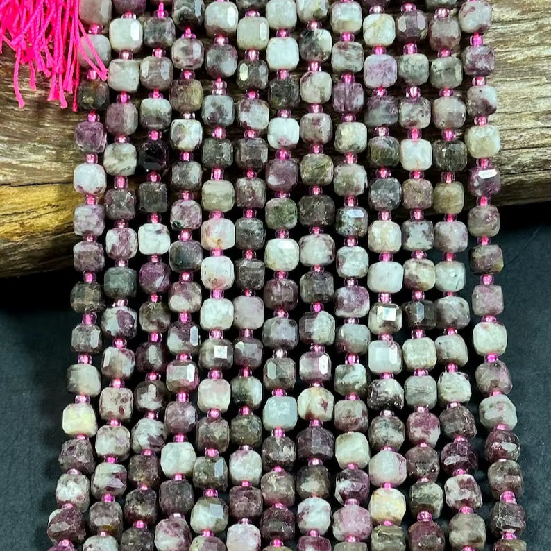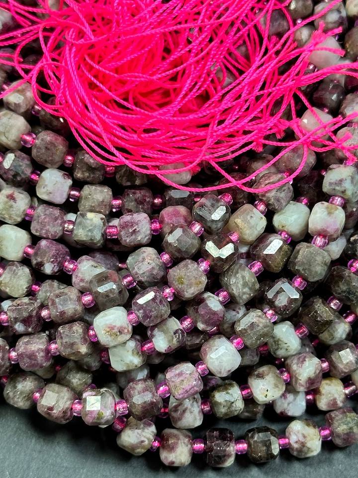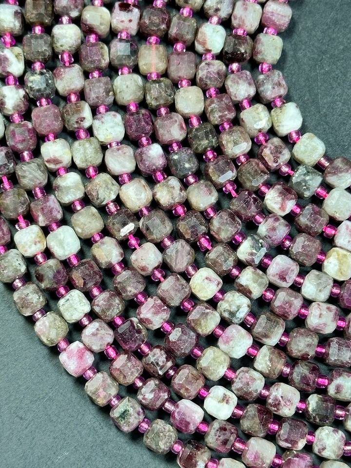 Natural Plum Tourmaline Gemstone Beads Faceted Cube Shape Gorgeous Plum Purple Color Full Strand For Jewelry