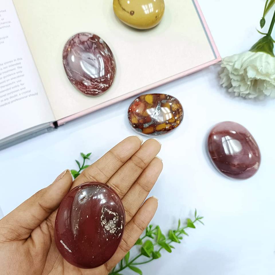 Natural Polished Mookaite Jasper Palm Stone - Oval Gemstone for Relaxation Meditation & Reiki Healing