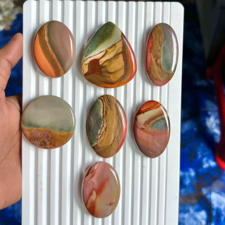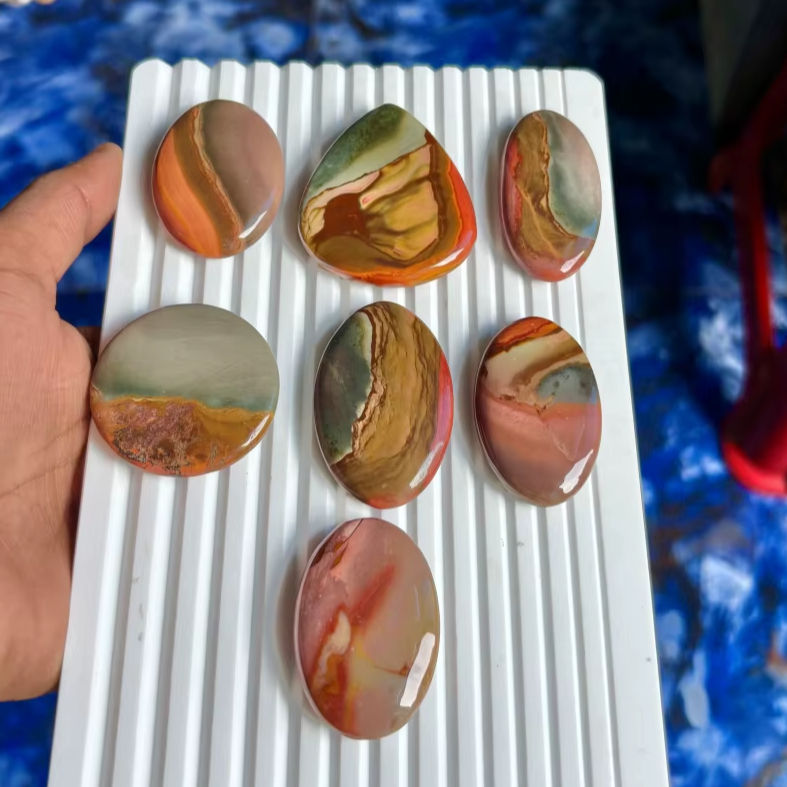 ชื่อสินค้า:พลอยเจสเปอร์หลากสีธรรมชาติ ทรงหลังเบี้ย
