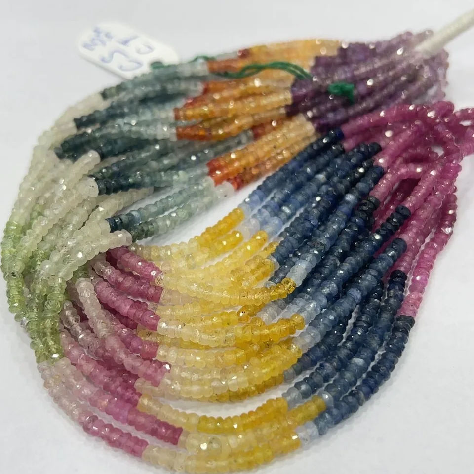 ลูกปัดแซฟไฟร์หลายเหลี่ยมเพชรพลอยเกรด AAA เกรดตามธรรมชาติขนาด17นิ้วสำหรับทำเครื่องประดับลูกปัดหินแซฟไฟร์