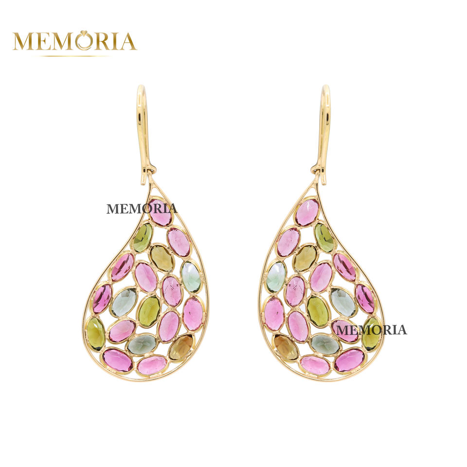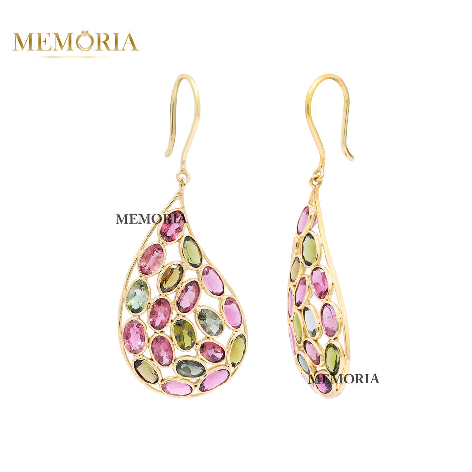 อัญมณีทัวร์มาลีนหลากสีล้ำค่าธรรมชาติ18K ต่างหูทองคำทำด้วยมือทำด้วยมือสำหรับผู้หญิงต่างหูห้อยอัญมณีสำหรับขายส่ง