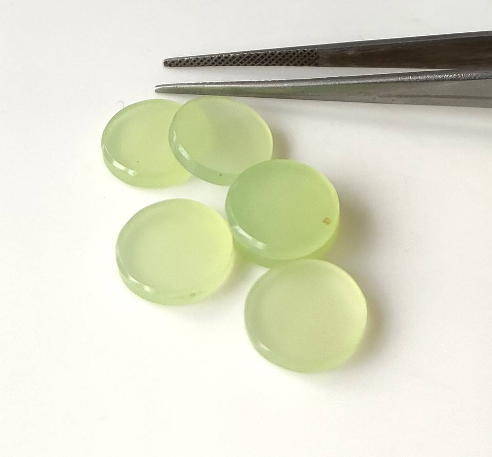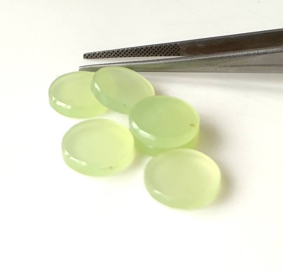 พลอยเพรนไนต์ธรรมชาติ คาลเซโดนี ขนาด 5 มม.-20 มม. ทรงกลม ขัดเงา สองด้านเรียบ รูปทรงเหรียญ ปรับแต่งสีได้