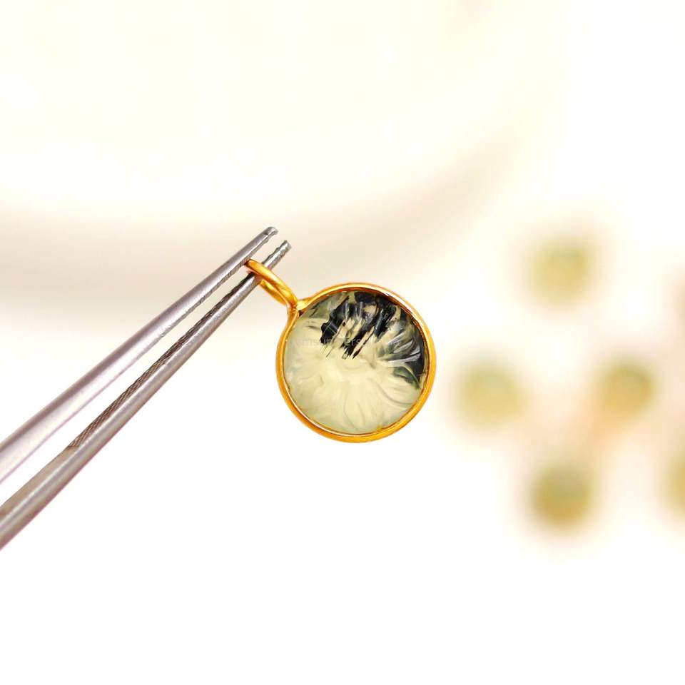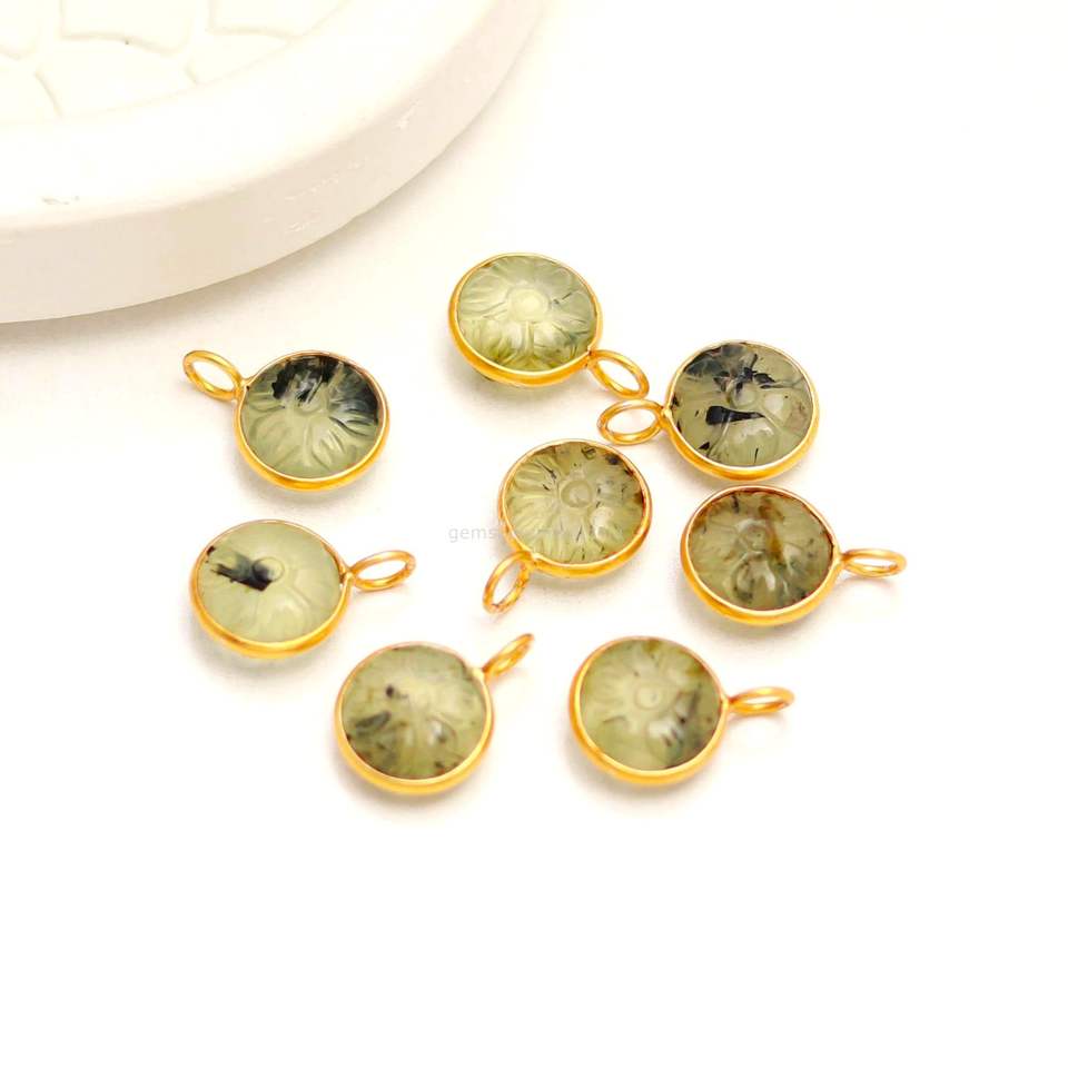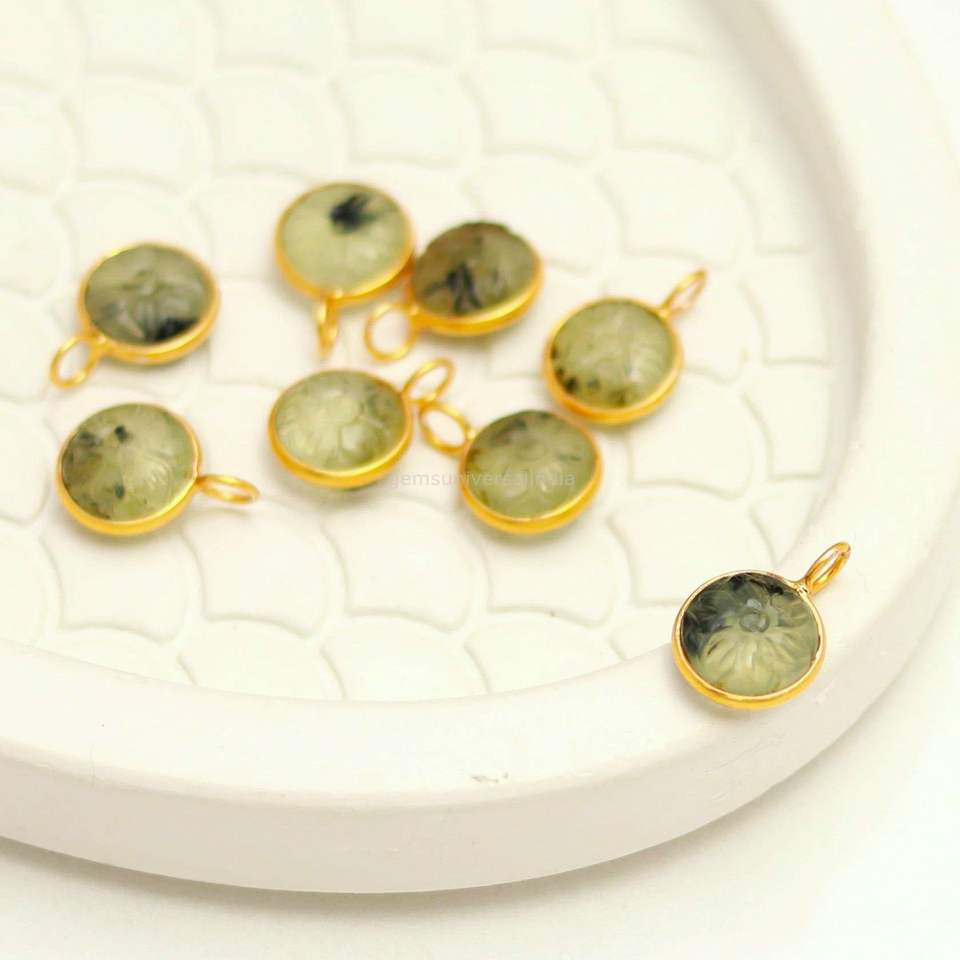 จี้หินเพรนไนต์รูปดอกไม้แกะสลักด้วยมือ เงินแท้ 925 สำหรับทำเครื่องประดับ ขายส่ง ขนาด 11 มม.