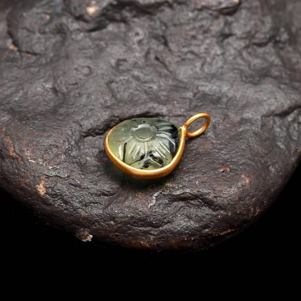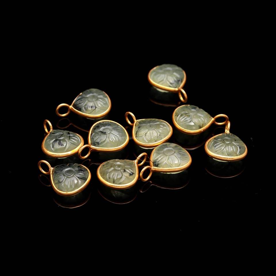 จี้รูปดอกไม้เพรนไนต์ธรรมชาติ เงินแท้ 925 แกะสลักด้วยมือ จี้รูปหัวใจสำหรับทำเครื่องประดับ ขายส่ง ขนาด 12 มม.