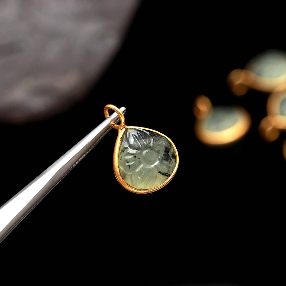 จี้หินพรีไนต์ธรรมชาติ แกะสลักเป็นรูปดอกไม้