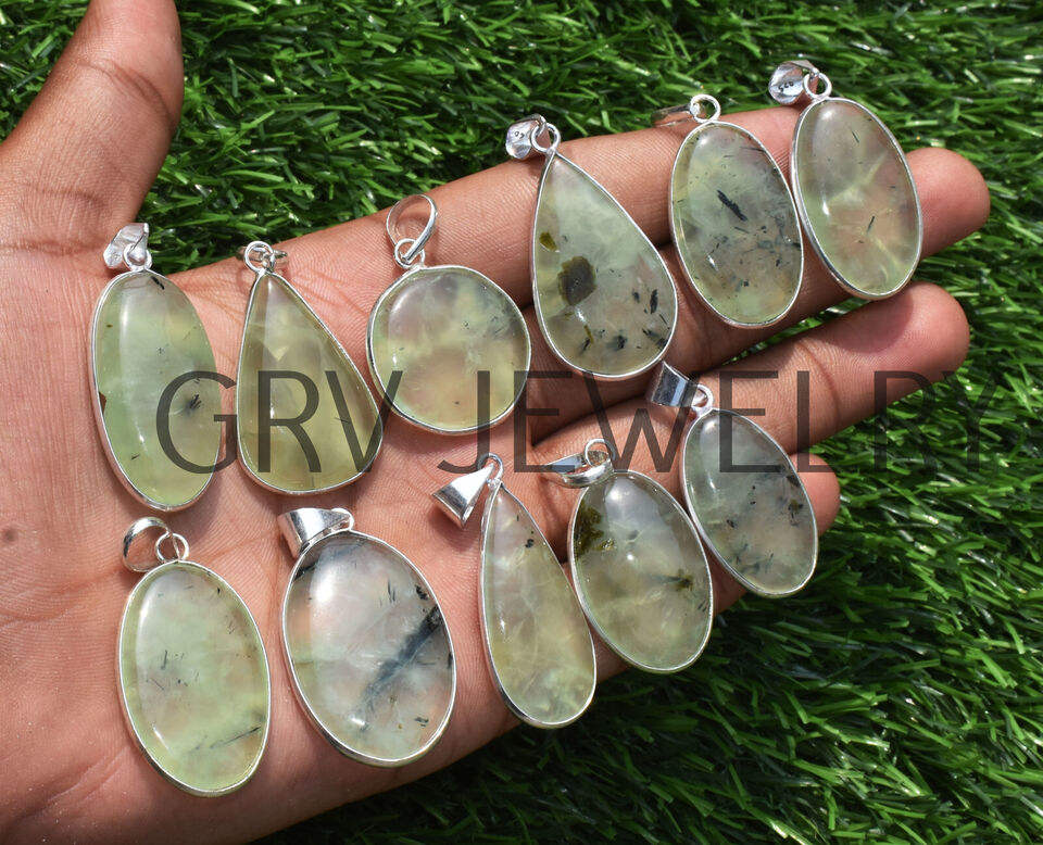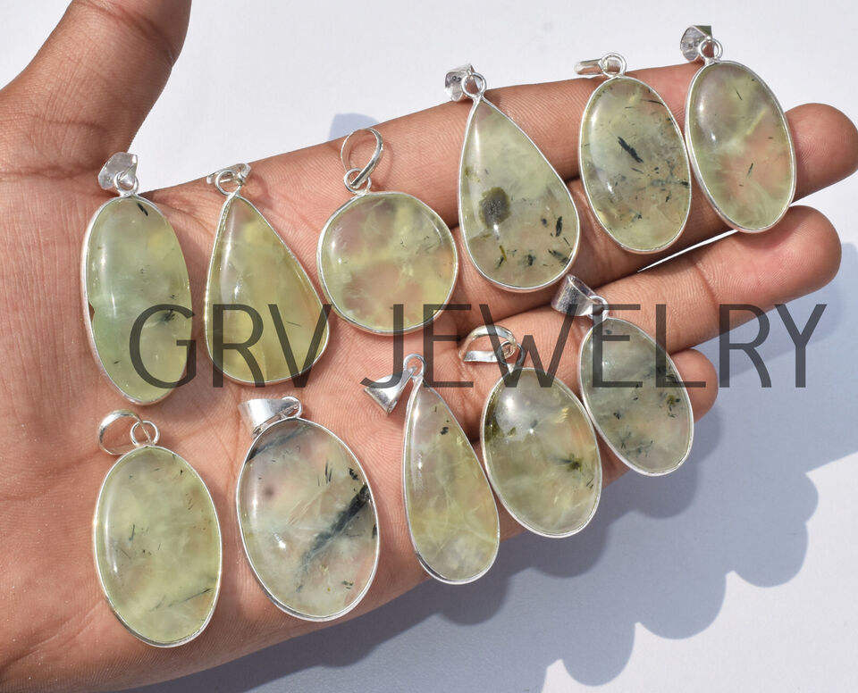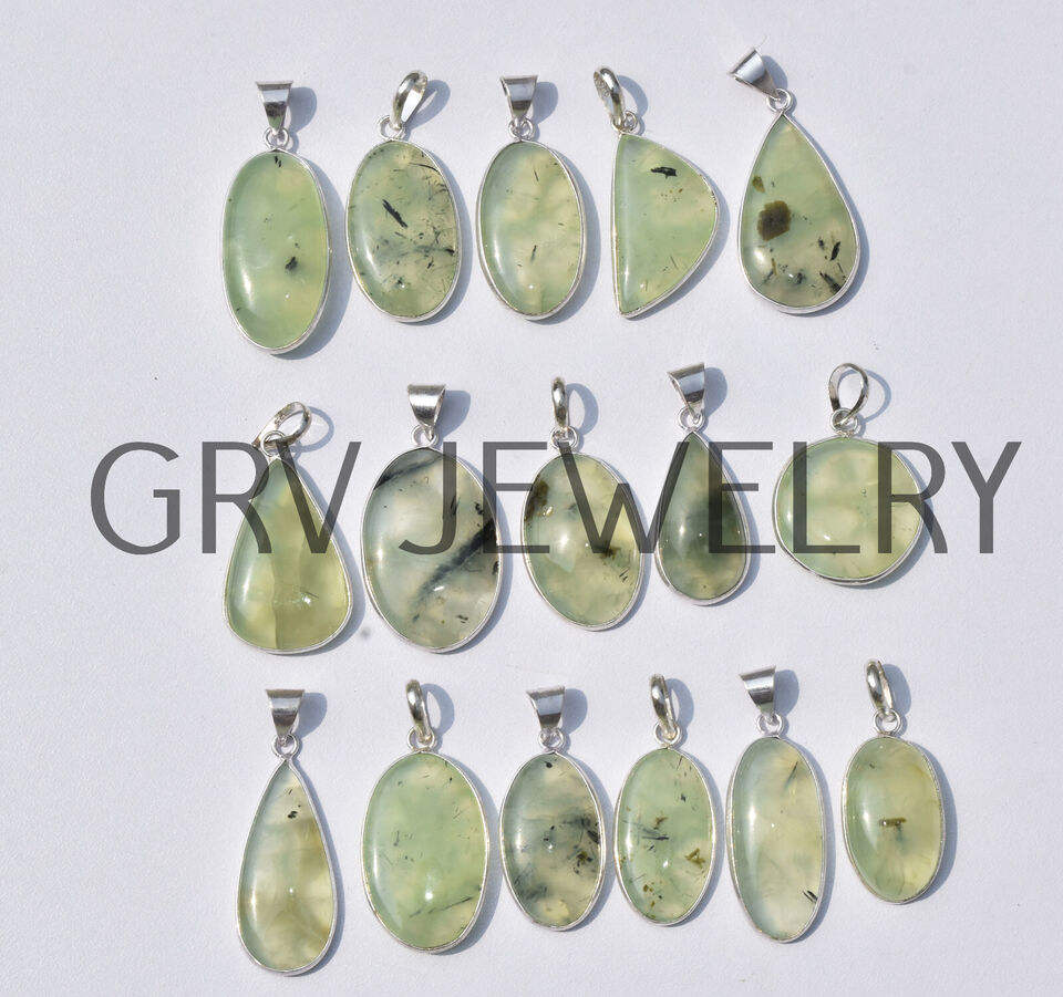 จี้เงินสเตอร์ลิง925ชาติพันธุ์ทำด้วยมือจำนวนมากสำหรับงานแต่งงานเครื่องประดับอัญมณีพรีไนต์แบบธรรมชาติ