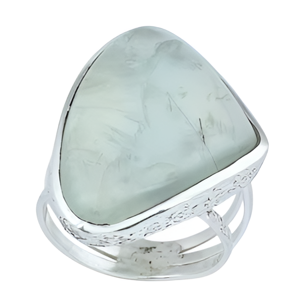 อัญมณี prehnite ธรรมชาติ925ล้านล้านตัดแหวนเงินสเตอร์ลิงเครื่องประดับอินเทรนด์เงินชุบแหวนแฟชั่นสำหรับทุกเพศ