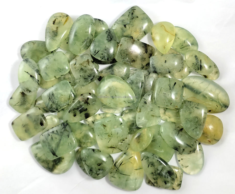 หินอัญมณีพรีไนต์พลอยสีเขียวธรรมชาติแบบแฮนด์เมดขนาดผสมขายส่ง