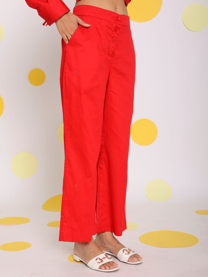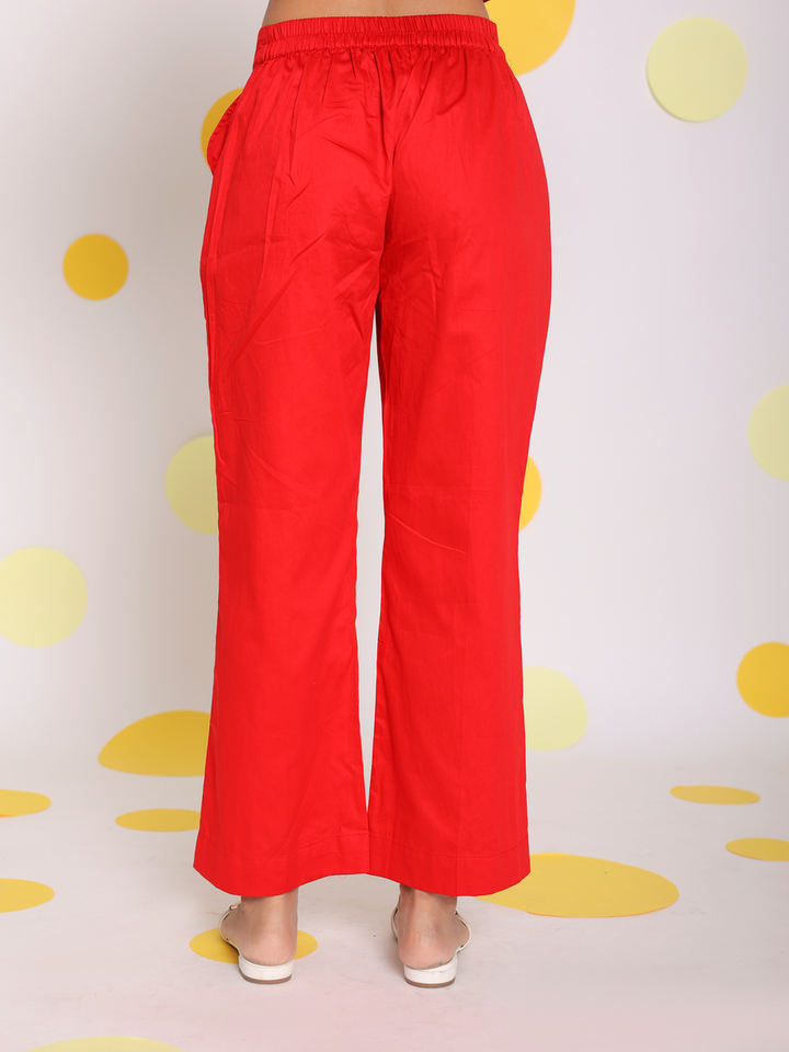 ชื่อสินค้า:กางเกงขายาวสีแดงทรงหลวม