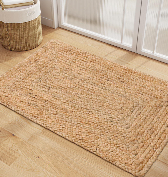 Natural Pure Jute Washable Braided Hand-Woven Glue-Free Living Room Floor Mat Imported Carpet Door Entry Reversible Non-Slip