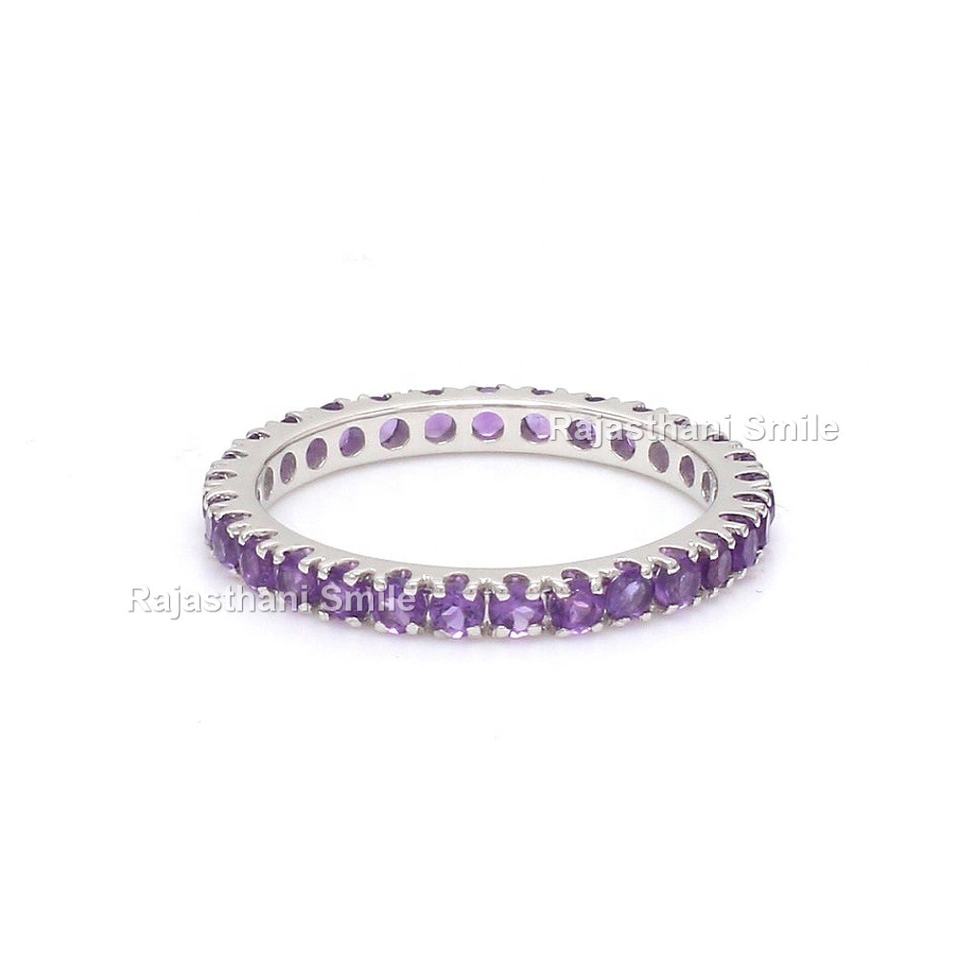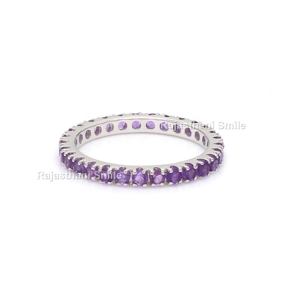 แหวนพลอยอเมทิสต์สีม่วงธรรมชาติ14K สีล้วนสีขาวทองทรงกลมตัดเป็นวงแหวน2มม. ได้รับการรับรองรับรองจากการจัดงานแต่งงานของผู้หญิง