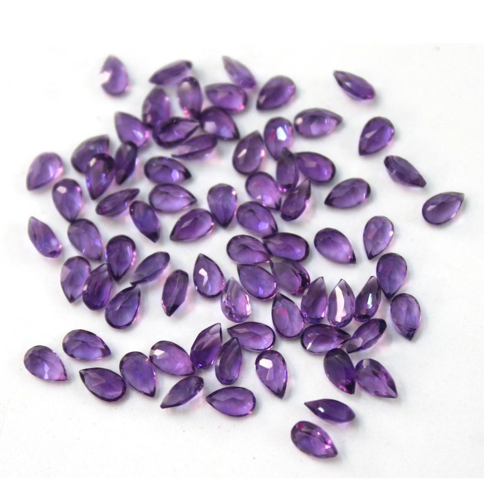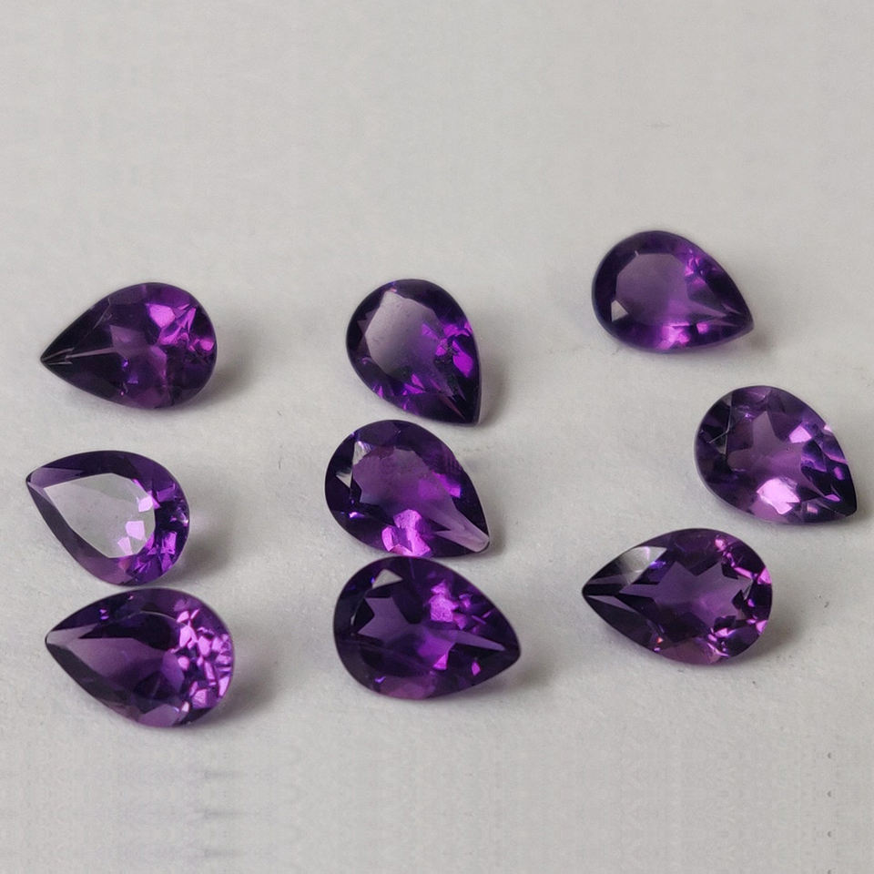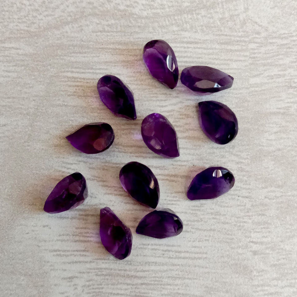 พลอยสีม่วงธรรมชาติทรงลูกแพร์ขนาด14X8มม. อัญมณีเจียระไนแบบหลวมสำหรับทำเครื่องประดับอัญมณีหลวม