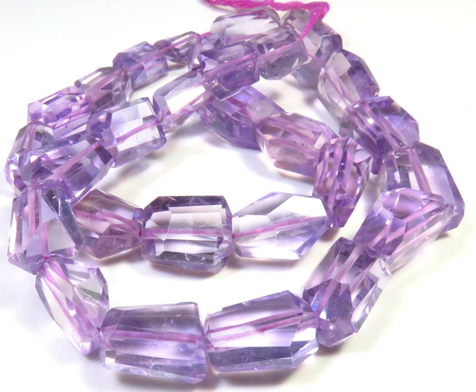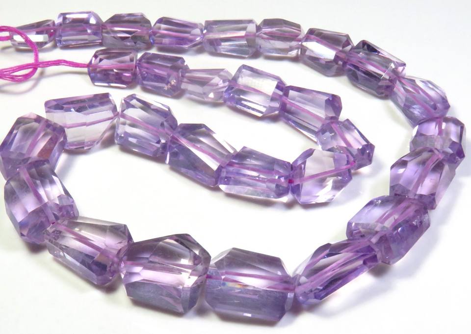 พลอยอเมทิสต์สีม่วงธรรมชาติทรงเหลี่ยมขนาด 12-17 มม. เม็ดพลอยทรงหยดน้ำขนาด 15 นิ้ว ร้อยเป็นเส้น ทรงไม่สม่ำเสมอ สำหรับทำเครื่องประดับ